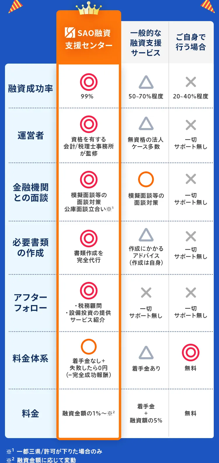 融資成功率に自信があるからこそできる「完全成功報酬」を採用。